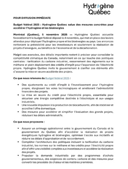 Budget fédéral 2025 : Hydrogène Québec salue des mesures concrètes pour accélérer l’hydrogène et les bioénergies
